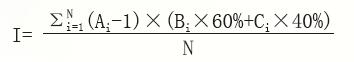 根據上述定性指標的量化、定量指標無量綱化處理和層次排序權數確定的方法,最終可以得出關於一個學校綜合評價值的計算公式: