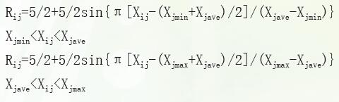 按照上述公式處理,得出定量指標值在0~5分之間,當Rij<l時,取Rij=1;當1≤Rij≤5時,取其實