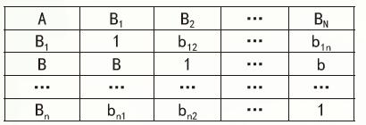 /3.5;7.5/2.5;8.5/1.5等。經過上述標度作為矩陣的元素,列出各層面需要比較的指標的判斷矩