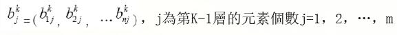 設第K-1層有m個元素C1,C2,……Cm對任一元素Ci,其對應的第K層元素的相對權數為: