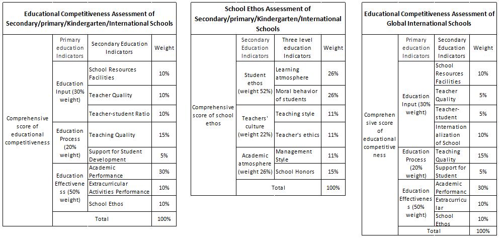 ● The Processing Method of the Evaluation Indicators and Data of Kindergartens, Primary and Secondary Schools and International Schools in Hong Kong, China and the World in Education Competitiveness ● The realistic index system of assessment in education competitiveness ● The Calculation Method of Education Competitiveness Assessment of Kindergartens, Primary and Secondary Schools in Hong Kong and International Schools in Hong Kong, China and the World (How to Evaluate School Climate, Academic Achievements and Extra-Curricular Activities?) ● Collection and Processing of Index Data ● The processing of evaluation data ● Words from Editor